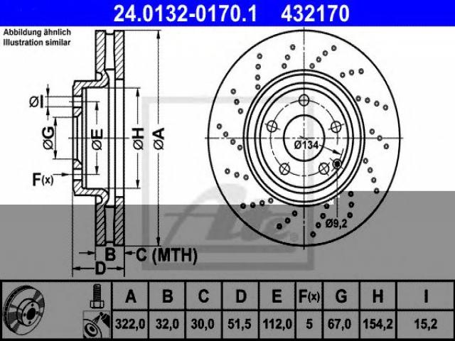 Ate 24.0132-0170 tarcza hamulc. mercedes c218 cls-klasa 11- przód, mercedes-benz cls (c218)