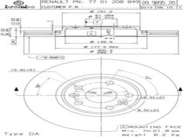 Brembo 09.9895.20 tarcza hamulc. renault scenic 05-09 2,0dci, renault scÉnic ii (jm0/1_)