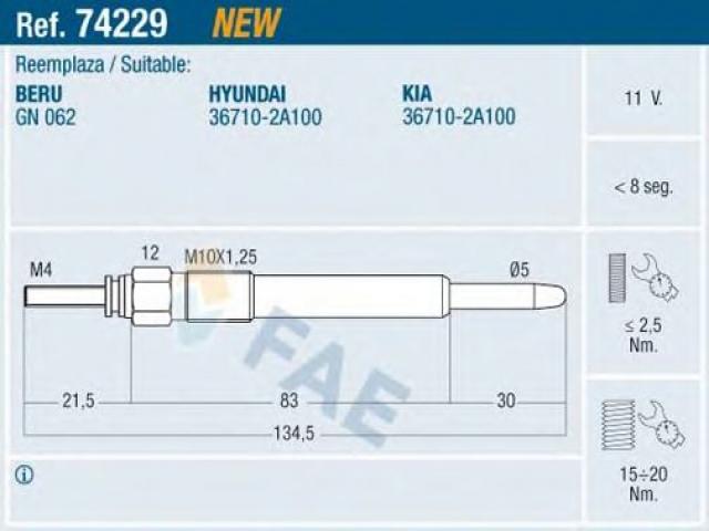Fae 74229 Świeca Żarowa hyundai kia