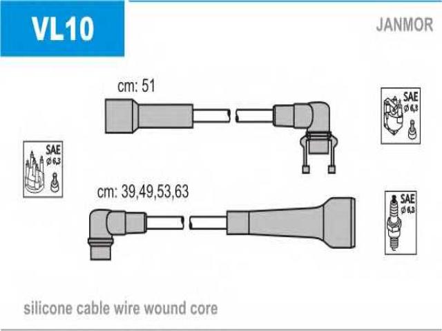 Janmor vl10 przewody wysokiego napięcia komplet volvo, volvo 440 k (445)