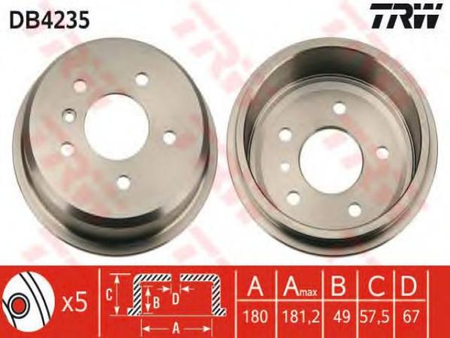 Trw db4235 bęben hamulcowy mercedes, w168 a-klasa 97-04, mercedes-benz klasa a (w168)
