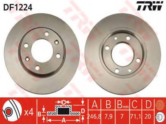 Trw df1224 tarcza hamulcowa peugeot 205 gti 86-98 tył, peugeot 205 i (741a/c)