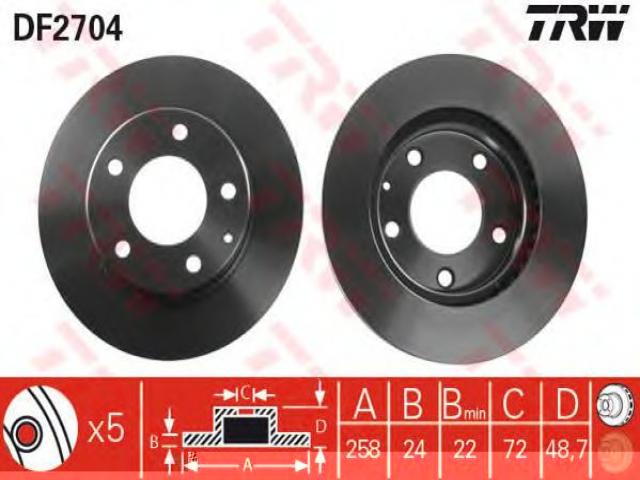 Trw df2704 tarcza hamulcowa mazda 626 91-02, ford usa probe ii (ecp), mazda mx-6 (ge)