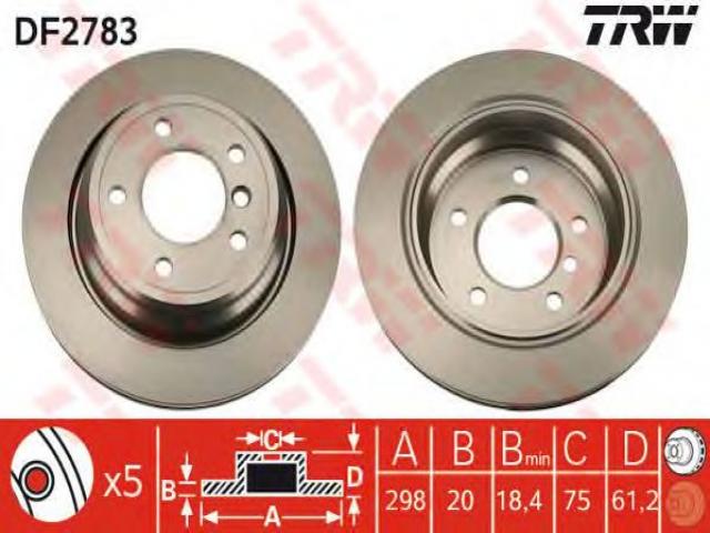 Trw df2783 tarcza hamulcowa bmw 5 e39 95-03 tył. went., alpina b10 (e39), bmw 5 (e39)