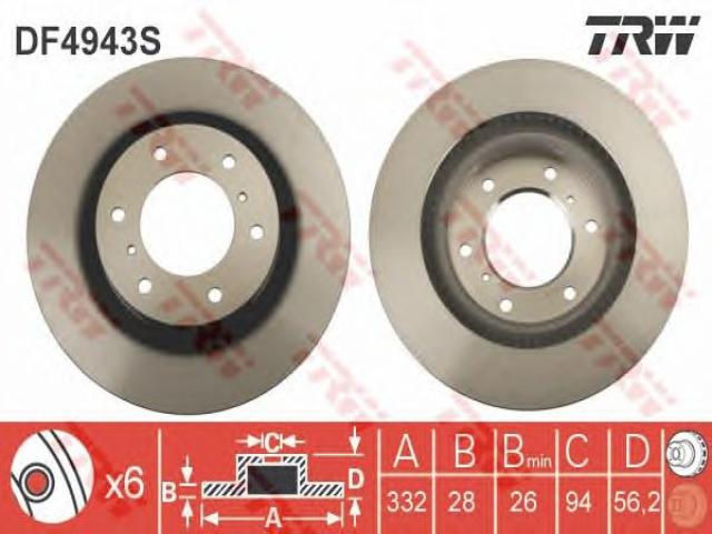 Trw df4943s tarcza hamulcowa mitsubishi pajero 07- przód, mitsubishi pajero iv (v8_w, v9_w)
