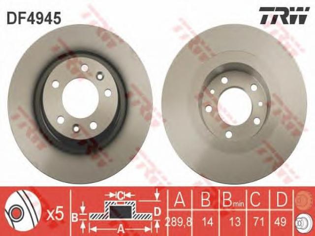 Trw df4945 tarcza hamulcowa fiat scudo 07- tył, citroËn jumpy, fiat scudo nadwozie pełne (270_)