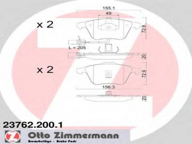 Zimmermann 23762.200.1 klocki hamulcowe audi a6 01- z czuj., audi a6 (4b2, c5)