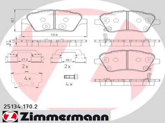 Zimmermann 25134.170.2 klocki hamulc. ford b-max 12- przód, ford b-max (jk)